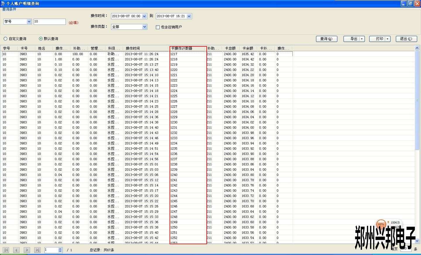 卡操作計數器是根據卡的操作自動生成的,對卡每進行一次操作卡計數器就會增加1,消費時通過查看卡操作計數器是否連續(xù)可判斷是否有消費記錄丟失,便于賬目的核對。