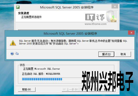 6、當(dāng)出現(xiàn)Sql Server 2005無法啟動時(shí),這個(gè)時(shí)候就不先點(diǎn)擊重試或者取消。
