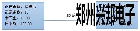設(shè)置好固定的轉(zhuǎn)賬金額后,將卡片在刷卡區(qū)中央附近輕輕一靠便可,轉(zhuǎn)賬成功后會有語音提示轉(zhuǎn)賬成功或者播報轉(zhuǎn)賬金額,轉(zhuǎn)賬機顯示界面會顯示轉(zhuǎn)賬金額,大錢包和小錢包的當前金額。如下圖所示:
